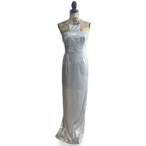 Stunning silver sequin dress. Halter neckline. Elegant and eye-catching.