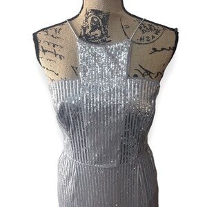 Adrianna Papell Silver Sequin Dress