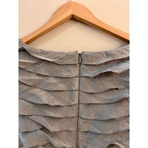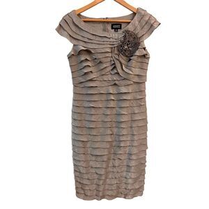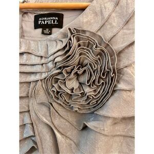 Adrianna Papell Silver Shimmer Rosette Knee-Length Formal Dress Size 10