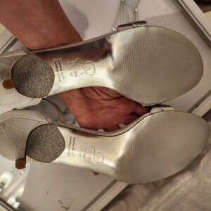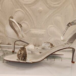 Elegant Adrianna Papell sandals. Features silver and gold tones. Perfect for special occasions.
