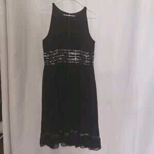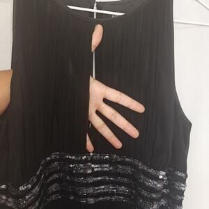 Adrianna Papell Size 12 Evening Silk Beads Sequins Cocktail Dress Black