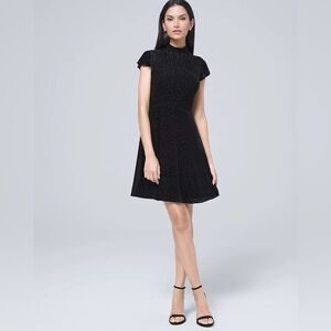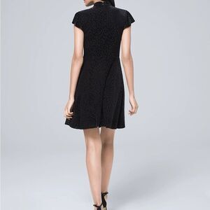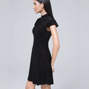 Black High Neck Mini Dress With Velvet Leopard Print Embossed & Zipper Back Closure