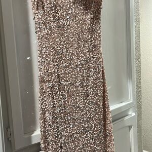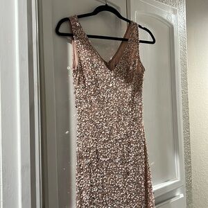 Adrianna Papell Size 2 Blush V Neckline Beaded Gown