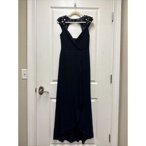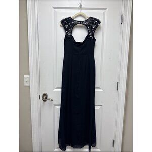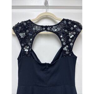 Adrianna Papell Size 2 Navy Cap-Sleeve Embellished Chiffon Mermaid Gown Dress