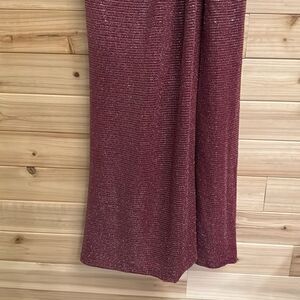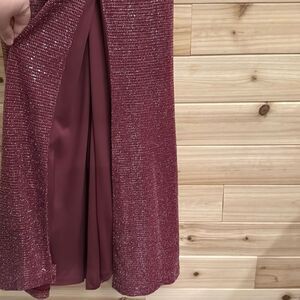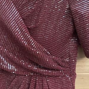 Deep Red Burgundy Full Sequined V Neck Wrap Style Front Maxi Length Gown With High Front Slit