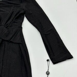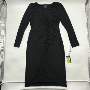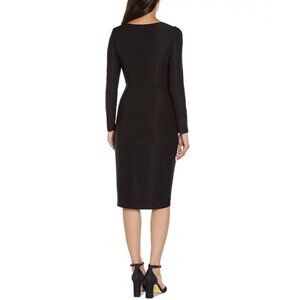 Adrianna Papell Size 6 Black Metallic Twist Detail Long Sleeve Sheath Dress NWT
