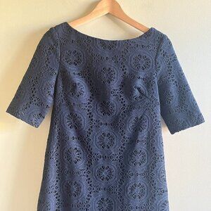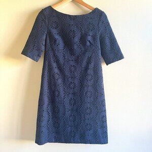 Adrianna Papell Women's Size 6 Shift Dress Blue Crochet Lace Overlay 3/4 Sleeves