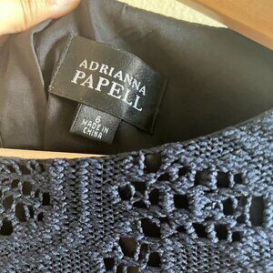 Adrianna Papell Size 6 Navy Blue Sleeves Crochet Lace Midi Pencil Dress Overlay
