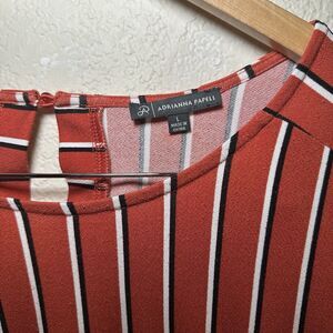 Adrianna Papell Size L Women's Blouse Orange White striped 3/4 Sleeve Top Button