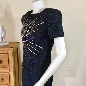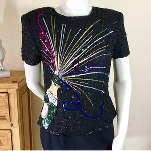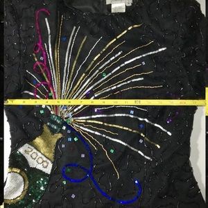 Adrianna Papell Evening Womens Size Small Sequined New Year 100% Silk Top Black