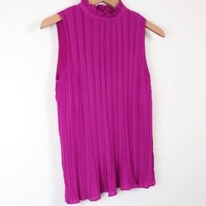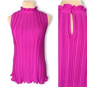 Adrianna Papell Size XS Sleeveless Pleated Blouse Keyhole Fuchsia Pink