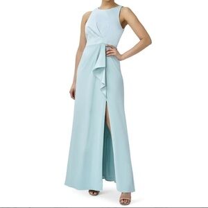 Adrianna Papell Sleeveless Floor Length Ruffled Gown. Blue. Size 8 #624 NWT