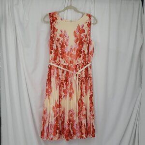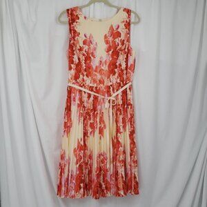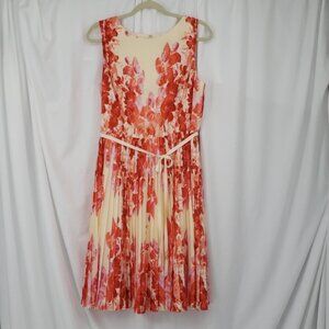 Adrianna Papell Sleeveless Red & Cream Floral Dress Belted Lined Size 12