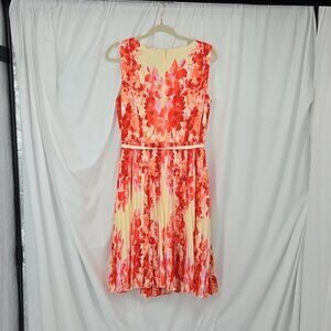 Adrianna Papell Sleeveless Red & Cream Floral Dress Belted Lined