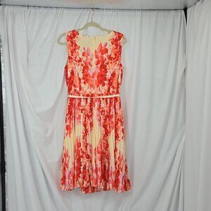 Features: Adrianna Papell Sleeveless Red & Cream Floral Dress Belted Lined