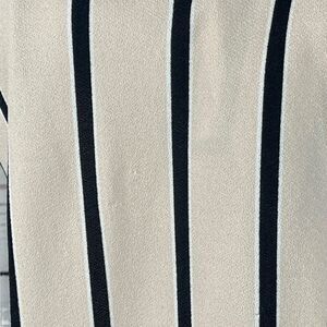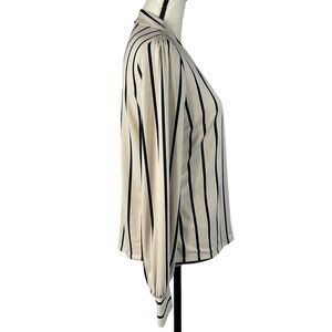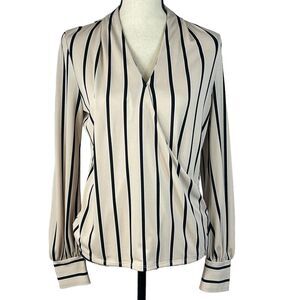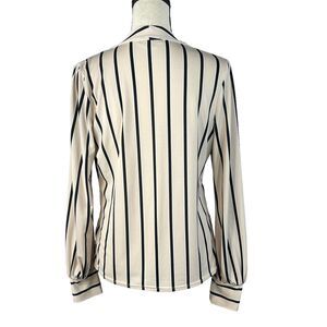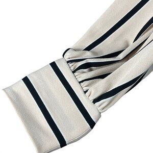 Adrianna Papell Small Top Long Puff Sleeves Striped V-Neck Stretch Beige Black