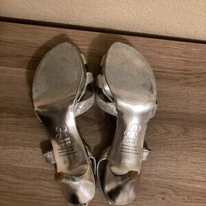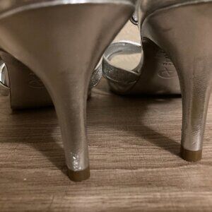 Adrianna Papell Sparkly Silver 3" Heels Sandals 7 1/2 Ankle Straps Dressy Party