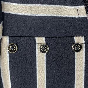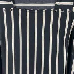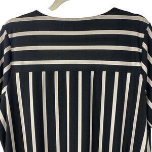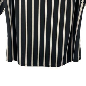 Adrianna Papell Popover Top Shirt Blouse Black Tan Stripes 3/4 Sleeves Square Neck Office Work Corpcore N