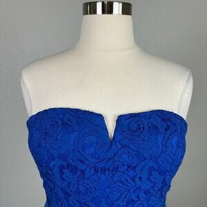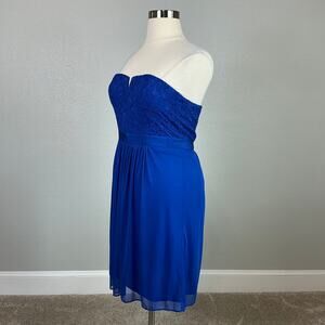 Adrianna Papell Strapless Lace Chiffon Mini Cocktail Dress Blue Size 14 Sheath