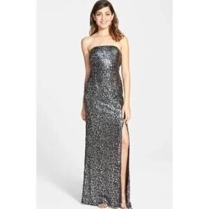 Adrianna Papell Strapless Sequin Maxi Dress Cutout Slit Long Formal Prom Gown