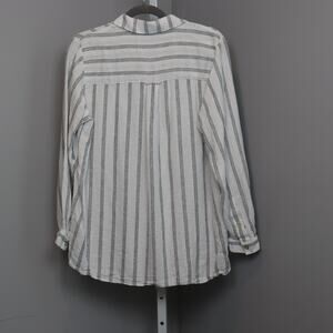 Adrianna Papell Striped Linen Blend Button-Up Shirt Women’s M Long Sleeve