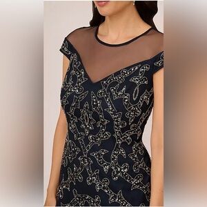 Adrianna Papell Studio Beaded Illusion Yoke Dress Sz 4 $139