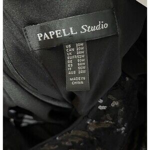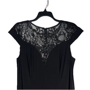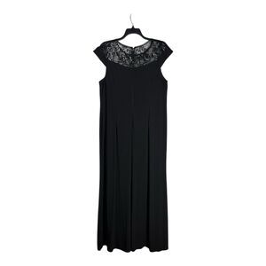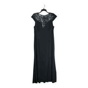 Adrianna Papell Studios Sequin Jersey Dress Black Lace 20W Maxi Slit Formal Gown