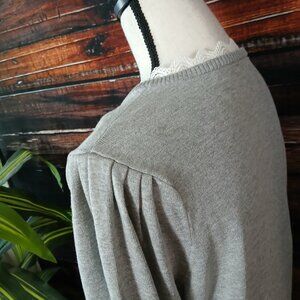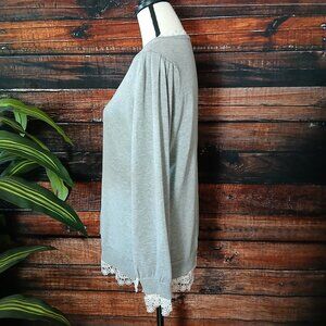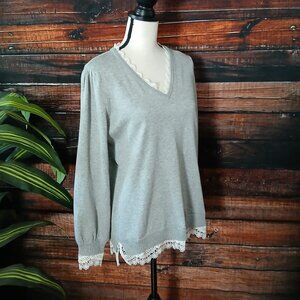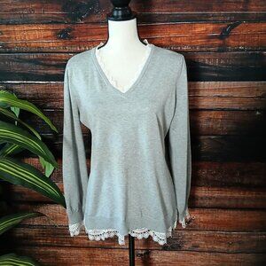 Adrianna Papell Sweater M Lace Trim Feminine V-Neck Gray Viscose