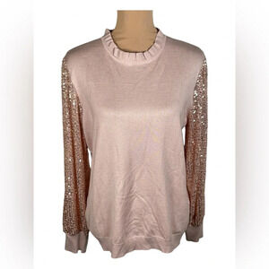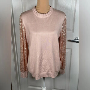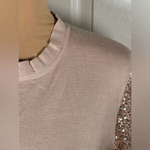 Adrianna Papell Sweater with puffy sequence long sleeves, Antique Rose, XL.