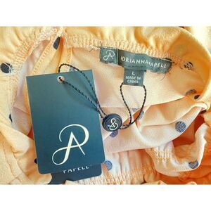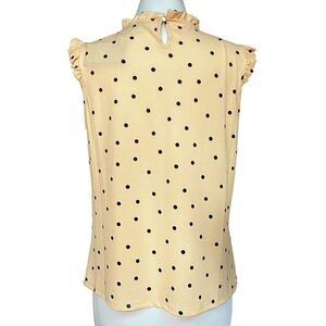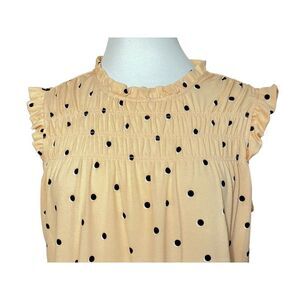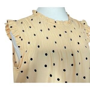 Adrianna Papell Sz L Smocked Ruffle Neck Peach Polka Dot Sleeveless Top NEW