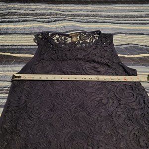 Adrianna Papell Sz M Navy Lace Front Stretch Back Sleeveless Top Office Teacher