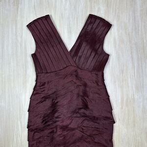 Adrianna Papell Taffeta Shutter Iridescent V-Neck Pleated Ruffle Sheath Dress 6