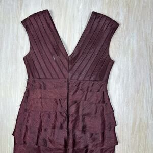 Adrianna Papell Taffeta Shutter Iridescent V-Neck Pleated Ruffle Sheath Dress 6