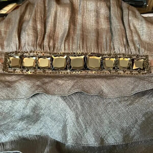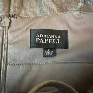 Adrianna Papell Tiered Pewter Dress Sz 6 Gem Jewel Embellishments High Neck