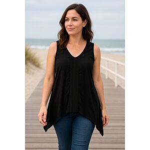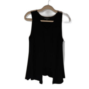 Adrianna Papell Top L Black Slvelss Tank Woven Center Detail Normcore Minimalist