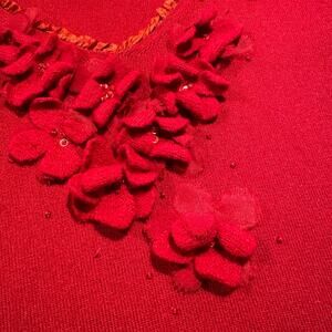 Adrianna Papell Top Vintage Y2K Coquette Girly Embellished Satin Trim Red Small