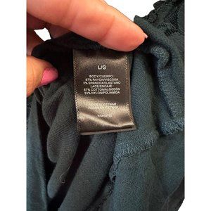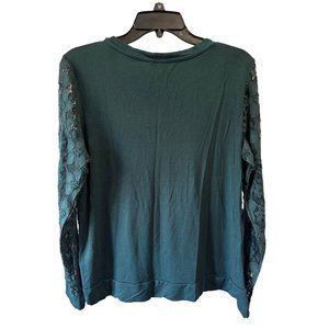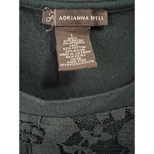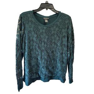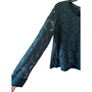 Adrianna Papell Top Womens Large Dark Pine Green Lace Long Sleeve Crew Neck A7-3