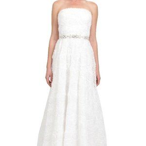 Adrianna Papell Tulle Rosette Ball Gown Ivory