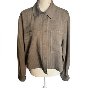 Adrianna Papell Utility Jacket Fade Olive Ivory Shadow Stripe Size Large EUC