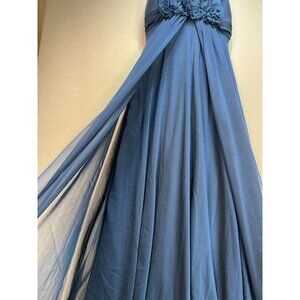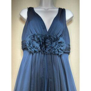 Adrianna Papell V-Neck Ball Gown Dress Womens Sze 8 Blue Sleeveless Floral Party