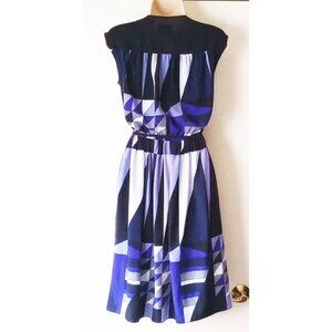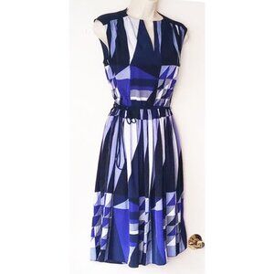 Adrianna Papell V-Neck Sleeveless Career Dress S Blue Geometric Print