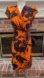 Bold orange wrap dress by designer brand Adrianna Pappell with a striking deep navy blue floral design. Ties in the back.