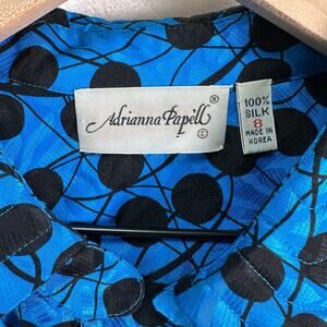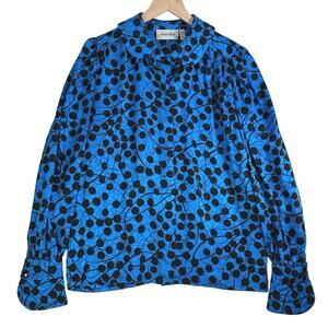 Adrianna Papell Vintage 100% Silk Blue Black Polka Dot Long Sleeve Blouse Size 8