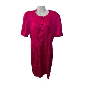 Adrianna Papell Vintage 100% Silk Hot Pink Front Button Up Midi Dress Size Small