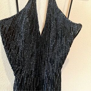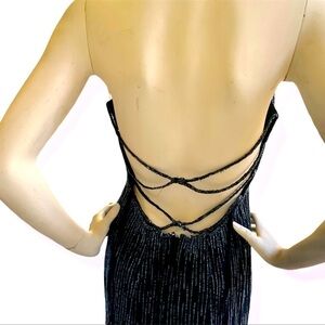 Adrianna Papell Vintage 90’ Boutique black silk beaded open back maxi dress 4
