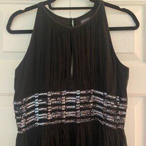 Adrianna Papell Vintage Silk Black Evening Cocktail Dress, Beaded + Sequins, 10