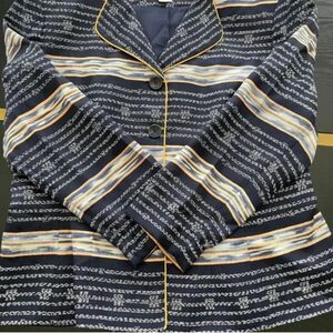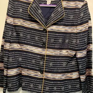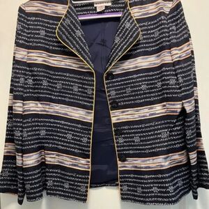 Adrianna Papell Vintage Silk Blazer Jacket Navy White Abstract Print Size Medium