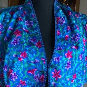 Vintage silk blue floral suit Jacket and Skirt.. set is different sizes great condition smoke/pet free home