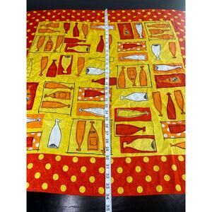 Adrianna Papell- Vtg Vibrant Silky Square Scarf- Orange Red Dots Wine Bottles 34x34"