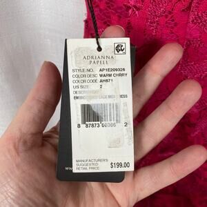 Adrianna Papell Warm Cherry Red Embroidered Lace Midi Dress Sz.2 NWT